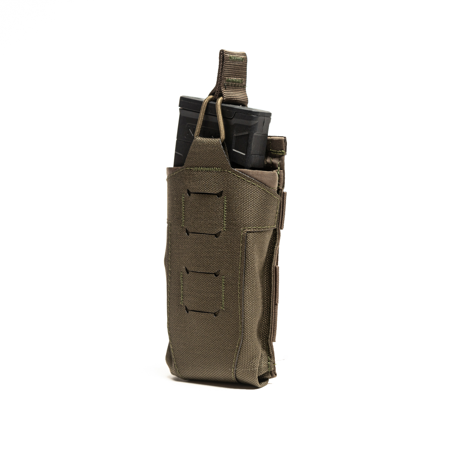עיצוב חדש, חיתוך לייזר בד קורדורה 1000D מקורי. רצועות ניילון וגומי מתיחה לשליפת המחסנית ואחסון בטוח וחזק. חיבור MOLLE