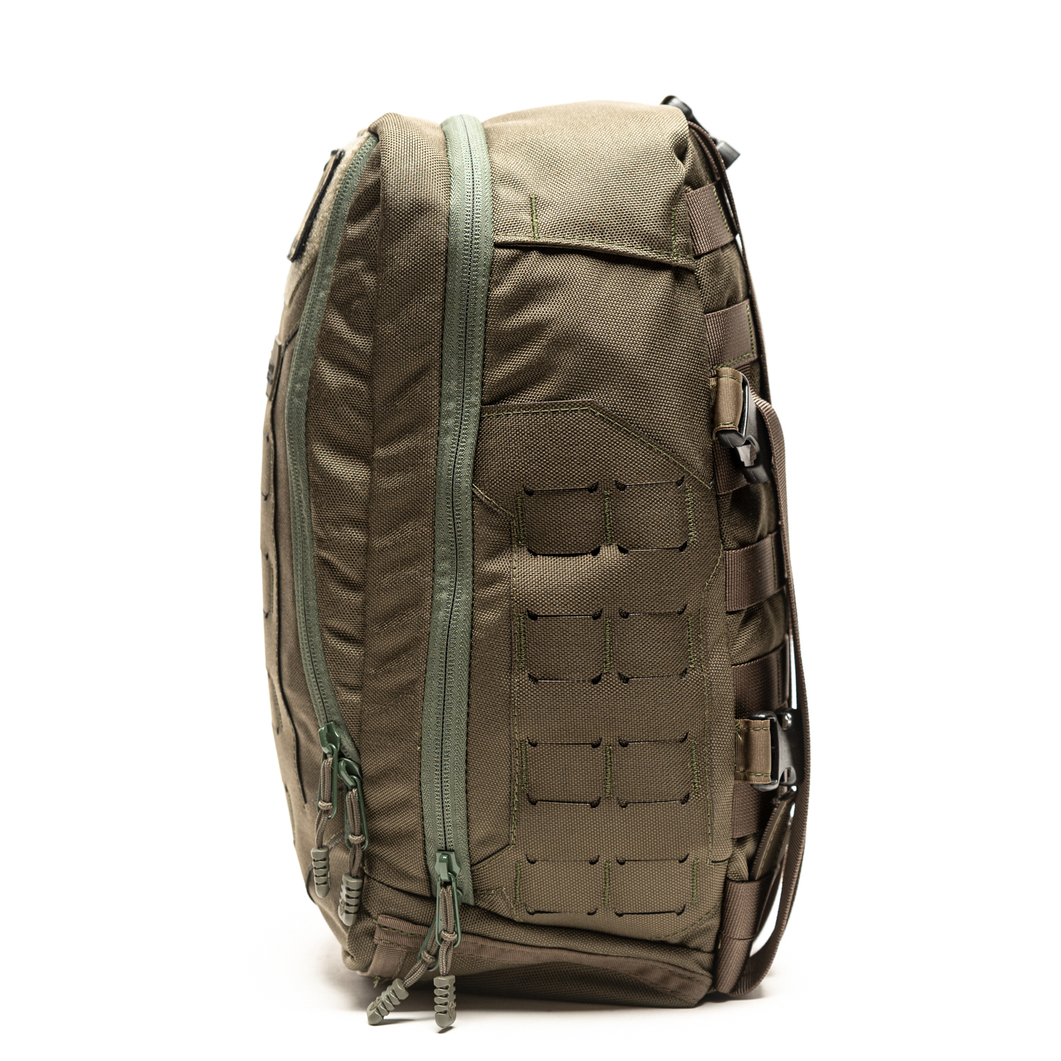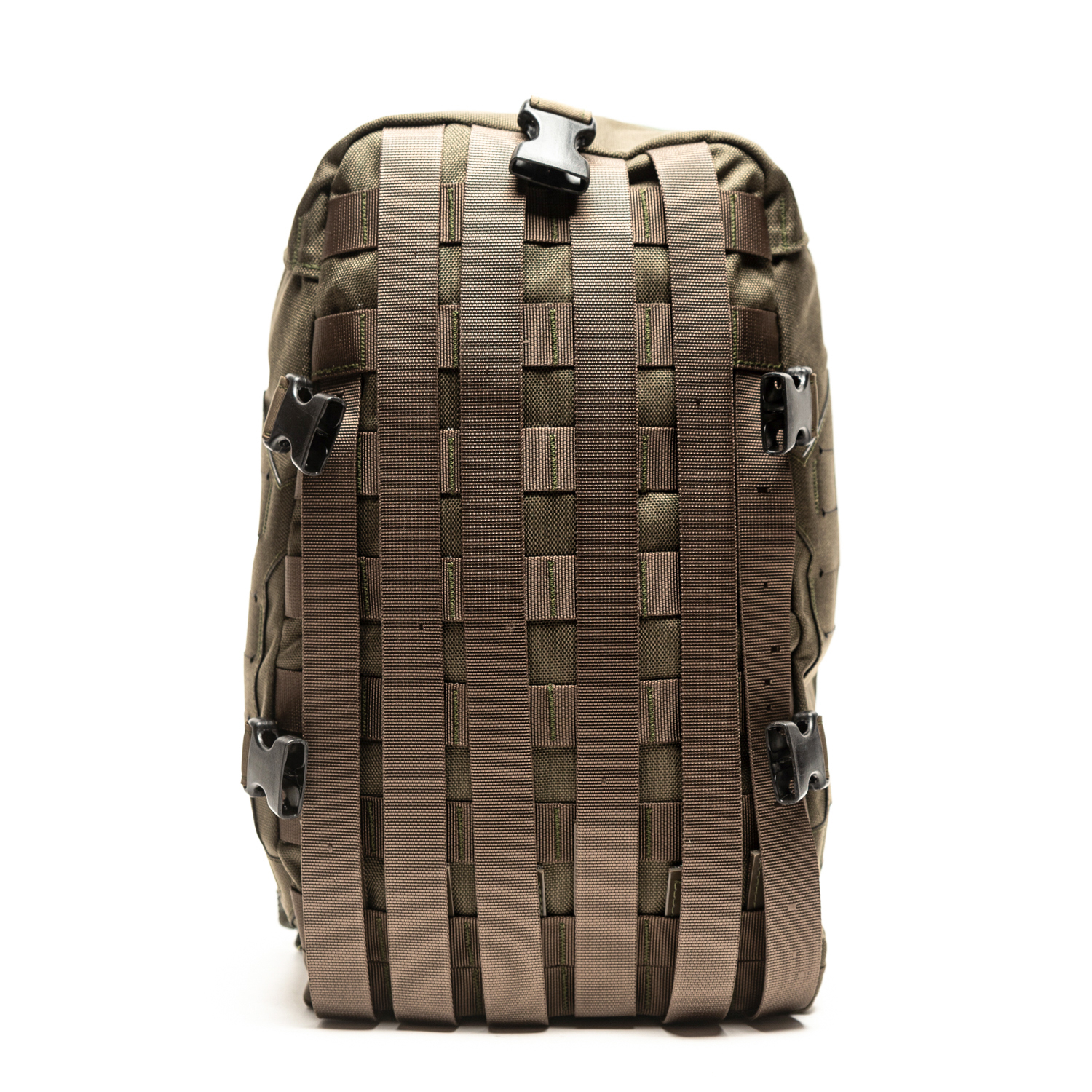 תיק גב לווסט בנפח 17 ליטר עם חיבור מודולרי לווסט מתחבר לכל ווסט מודולרי שקיים בשוק. עיצוב חיתוך לייזר לMOLLE במקום רצועות ניילון קיים תא הפרדה לשלוקר עד נפח 3 ליטר מקום לאחסון ציוד נוסף ותא חיצוני לציוד אישי. תא תחתון נשלף עם כיסוי לקסדה וסגירת קליפס מהיר חומרי גלם: קורדורה 1000 מקורי רוכסןYKK רצועות ניילון אבזמים  ITW